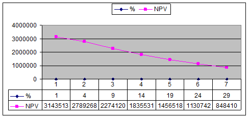 | NPV | 3143513 | 2789268 | 2274120 | 1835531 | 1456518 | 1130742 | 848410 |