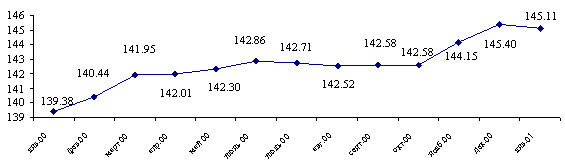Денежная масса. В 2000 году позитивной была и динамика активов банковской системы. Так, чистые внешние активы банковской системы выросли на 15,9% (или на 294,9 млн. долл.), а внутренние активы банковской системы увеличились более чем в 5,2 раза (или на 71,3 млрд. тенге). Рост внутренних активов банковской системы произошел за счет значительного, более чем в 1,8 раза (или на 137 млрд. тенге), увеличения требований к другим секторам экономики (несмотря на снижение чистых требований к Правительству банковской системы на 26,9% и чистых прочих внутренних активов банковской системы - на 30%). Все указанные факторы способствовали увеличению денежной массы на 45,9% до 399,5 млрд. тенге.