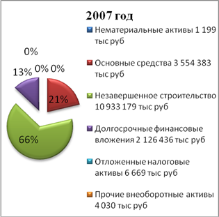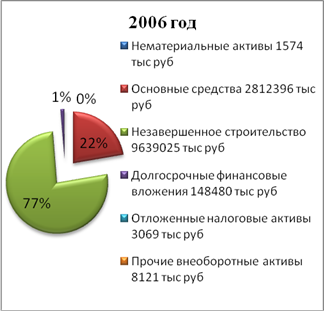 Проведем структурный анализ внеоборотных активов, оборотных активов, долгосрочных и краткосрочных обязательств предприятия, а также анализ собственного капитала. Прибегнем к статистике и применим метод наглядности. Для получения точных финансовых показателей обратимся к бухгалтерской документации – Бухгалтерскому Балансу (приложение 1) и Отчету о прибылях и убытках (приложение 2) за 2006 – 2007 годы.