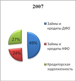 Уже на первый взгляд – положительная динамика снижение доли внешних долгов предприятия. Рассмотрим структуру наглядно.