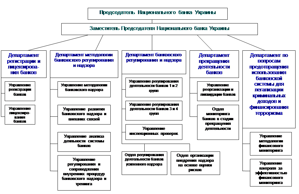 Таким образом, обобщая функции, которые выполняют органы надзора в структуре Национального банка Украины, можно представить их следующим образом: