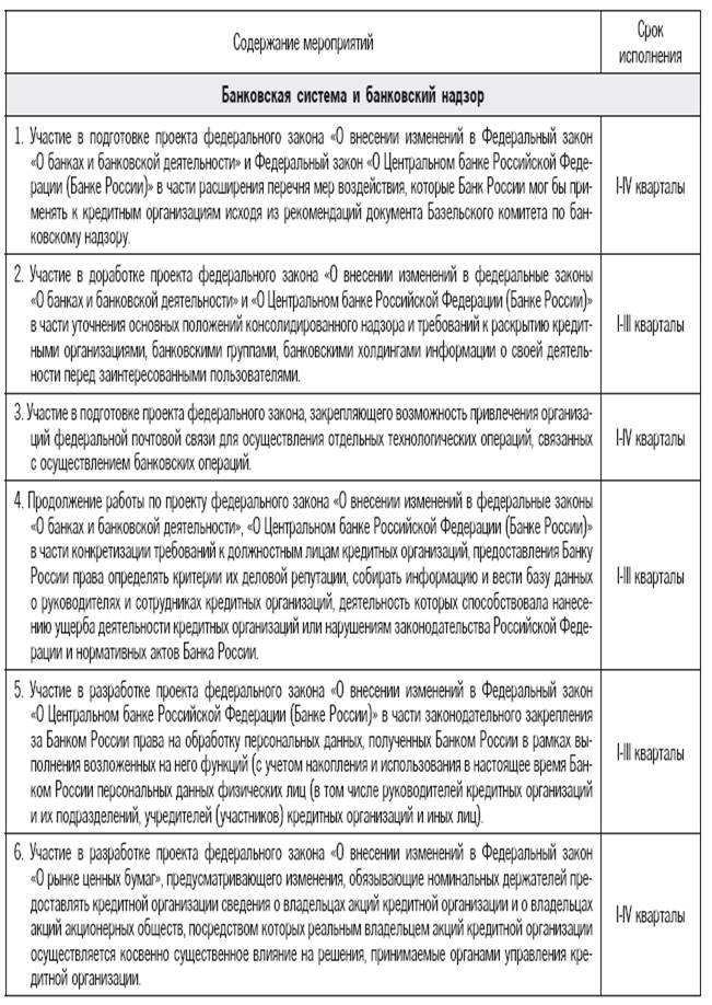 3. Исследовать план важнейших мероприятий Банка России на 2010 год.