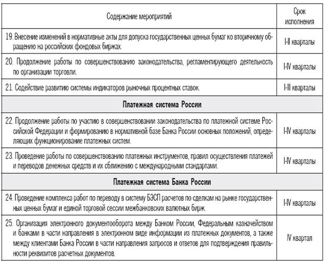 3.1 План важнейших мероприятий Банка России на 2010 год по совершенствованию банковской системы Российской Федерации, банковского надзора, финансовых рынков и платежной системы России