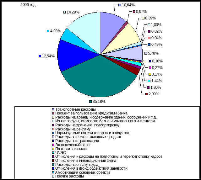 Из проведенного постатейного анализа расходов на реализацию установлено, что основное снижение уровня расходов на реализацию произошло по статьям: транспортные расходы (0,27%); расходы на аренду и содержание зданий (0,11%) износ посуды, столового белья и малоценного инвентаря (0,13%); расходы на ремонт основных средств расходы (0,10%); прочие расходы (0,10%), общая сумма относительной экономии составила 250 млн р.
