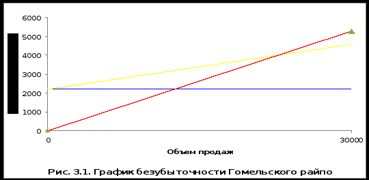 4. При моделировании безубыточности, с использованием классификации издержек обращения на переменные и постоянные Гомельскому райпо для покрытия расходов в 2007 году необходимо обеспечить объем реализации равный 23040,3 млн.р., а для достижения прибыли в размере 438 млн.р., объем реализации должен составлять не менее 27680,0 млн.р. Также необходимо обратить внимание на такой показатель как запас финансовой прочности. Для Гомельского райпо он составляет 15,36 %, это означает, что объемы продаж товаров могут снизиться на 15,36 % прежде, чем будет достигнута точка безубыточности.