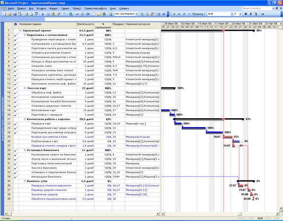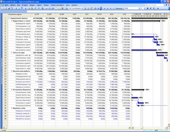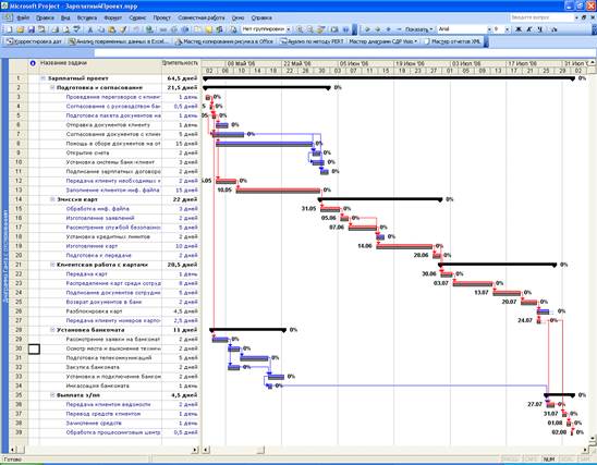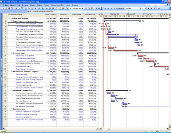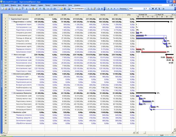 Наша страна не исключение. Многие компании используют системы управления проектами. В данной работе был рассмотрен пример построения проекта по предоставлению зарплатного проекта банком. Поставленные цели были достигнуты, задачи решены.
