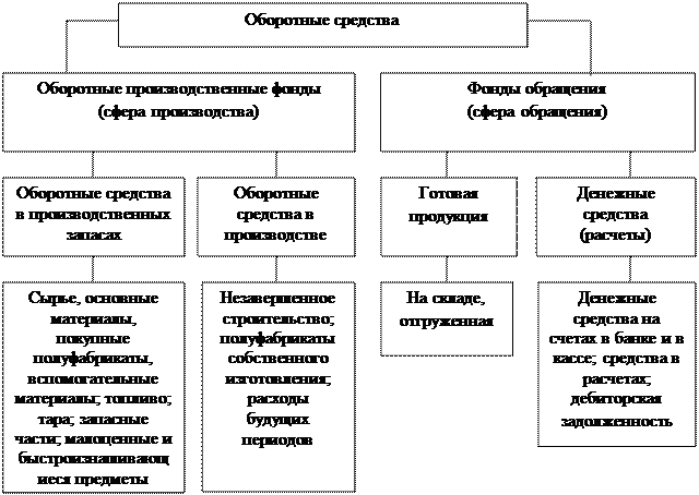 Оборотные средства предприятия состоят из оборотных фондов и фондов обращения. Оборотные производственные фонды по вещественному содержанию представляют собой предметы труда и орудия труда. Эти фонды обслуживают сферу производства и полностью переносят свою стоимость на стоимость готовой продукции, изменяя первоначальную форму в процессе одного производственного цикла. Фонды обращения хотя и не участвуют непосредственно в процессе производства, но необходимы для обеспечения единства производства и обращения.