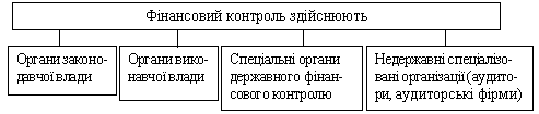 Органами фінансового контролю називають органи, спеціально створювані для здійснення контрольних функцій, або органи виконавчої влади, на які поряд з основними завданнями покладаються контрольні функції у відповідній галузі фінансової сфери.