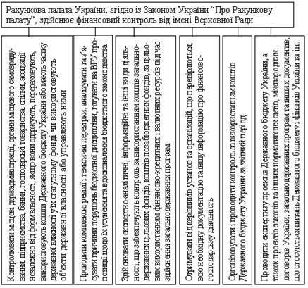 Верховною Радою створено постійно діючий орган -Рахункову палату. Її повноваження визначені Законом України "Про Рахункову палату" (1996 р.). Завдання Рахункової палати: