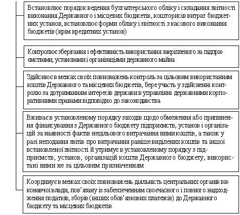 — управління коштами державного бюджету, позабюджетних цільових фондів, коштами установ та організацій, які утримуються за рахунок державного бюджету;