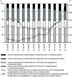 Протягом 2005-2008 років банківський сектор України дотримувався агресивної політики розвитку, що мало прояв у високих темпах зростання кредитних портфелів банків (понад 50% на рік) за рахунок зовнішніх запозичених ресурсів, наданих закордонними власниками. Надзвичайно високою та економічно необґрунтованою була питома вага валютних кредитів у структурі кредитних портфелів банків. Починаючи з листопада 2008 року, все це створило для української банківської системи значні ризики та проблеми. За 2009 рік обсяг проблемної заборгованості зріс на 55,18%, сягнувши 27,955 млрд. грн., через що банки сформували на 13,87 млрд. грн. нових резервів і зазнали збитків у 7 млрд. грн. Резерви під кредитні операції за 2009 рік зросли на 13,87 млрд. грн. до 58,37 млрд. грн. (+31,16%).