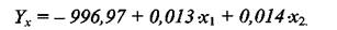 З табл. 2. бачимо, що рівняння регресійної залежності обсягу фінансування інноваційної діяльності у промисловості (Yx ) від фінансового результату від звичайної діяльності до оподаткування у промисловості (х1) та обсягу реалізованої промислової продукції (х2 ), матиме вигляд: