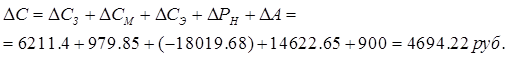 | Таким образом, разность себестоимостей базового и нового вариантов равна: