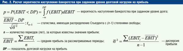 а показатель долговой нагрузки на прибыль (DP) принимается за неизвестное. Таким образом, задача решается как бы с конца: от порогового значения вероятности к определению допустимой величины обслуживания долга, а затем и самого долга.