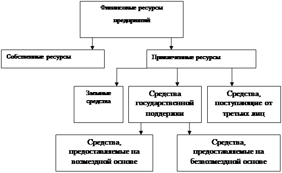 Рассмотрим классификацию финансовых ресурсов предприятий на основе источников их формирования (Рис. 1.1). В основу положено деление финансовых ресурсов предприятий на собственные и привлеченные.