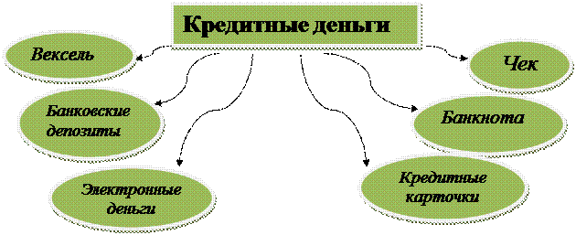 Функции денег как средства платежа соответствует определенная их форма – кредитные деньги; первичный их вид – вексель, более развитый – банкнота, которые возникают на основе обращения долговых обязательств.
