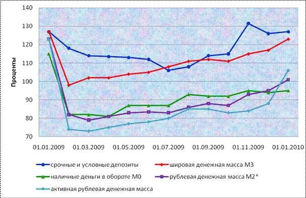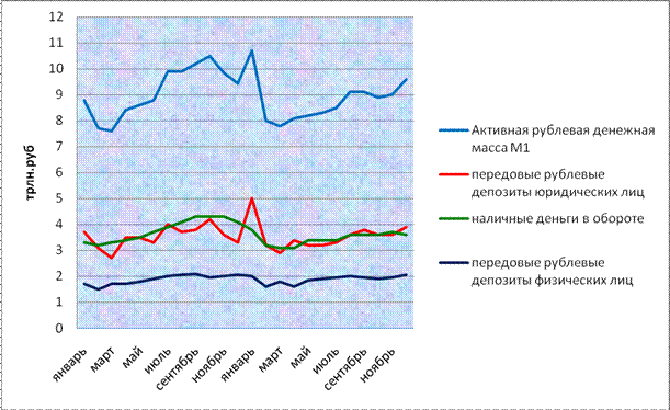 Во второй главе для реализации поставленных целей мы изучили все виды денег, начиная от товарной к современной, рассмотрели денежные агрегаты, рассчитываемые Национальным банком Республики Беларусь ( М0,М1, М2, М3). Чтобы понять, что входит в состав денежной массы, мы рассмотрим и проанализируем структуру и динамику рублевой денежной массы, а также в общем широкую денежную массу.