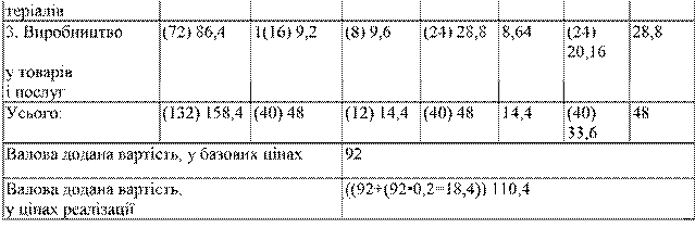 Міжгалузева модель виробництва реалізованих благ після введення ПДВ (20 %), податку на фонд зарплати (30 %) і податку на прибуток (30 %), у цінах реалізації, млрд грн.