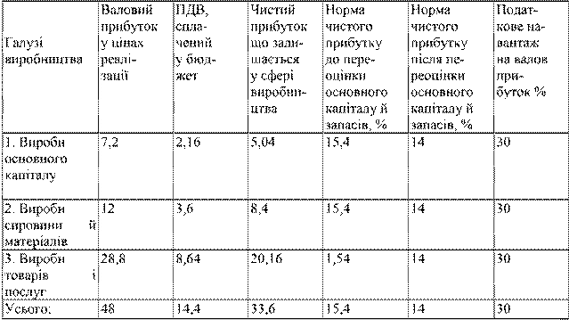 Якщо сукупний податок на фонд заробітної плати становить 30 %, то підприємство повинне заплатити в бюджет і різні централізовані фонди ще 30 млн грн. Однак підприємство має у своєму розпорядженні прибуток у розмірі всього 20 млн грн., у той час як до сплати ПДВ воно мало 20 + 28 = 48 млн грн. валового прибутку, а фактична рентабельність продажів становила в цінах реалізації 48/216 • 100 % = 22,2 %.