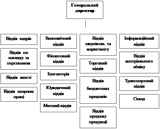 ТОВ «Тантал» має структуру яка підпорядковується генеральному директору. В загальному вигляді структура ТОВ «Тантал» виглядає так, як показано на рисунку 1.
