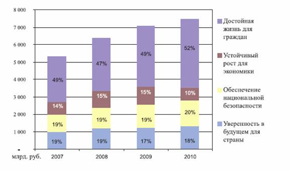 Бюджет 2008–2010 годов направлен на повышение уровня жизни населения и выполнение всех обязательств перед гражданами, поддержку стратегических и инновационных отраслей,обеспечение безопасности, создание потенциала для устойчивого развития страны представлено в Приложении .
