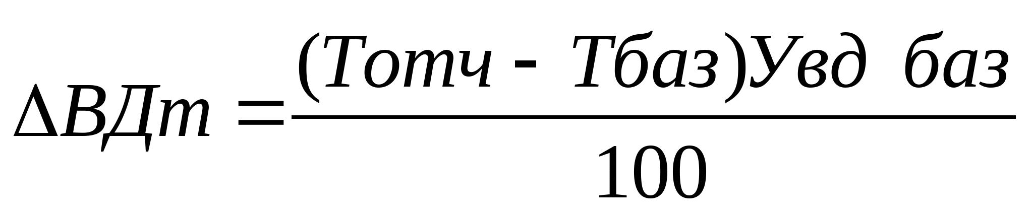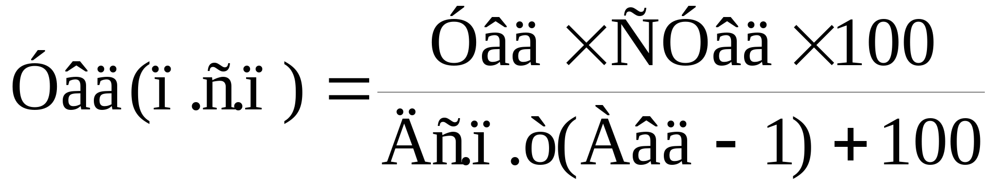 где СУвд – соотношение уровня валовых доходов по продукции собственного производства к уровню валовых доходов по покупным товарам, %; Дс.п.т – доля собственной продукции в товарообороте (базисная), % [14, с.126].