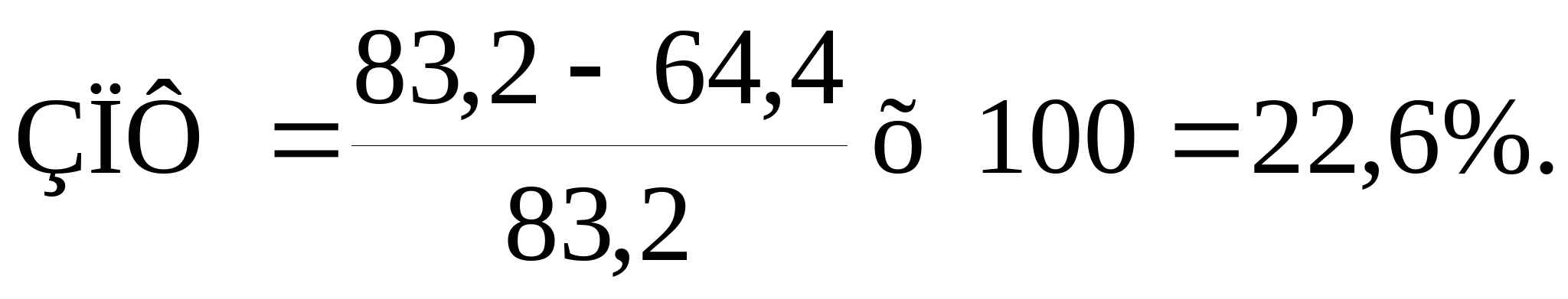 44,2 / [1 – (26,1 / 83,2)] = 44,2 / 0,686 = 64,4 млн. руб.