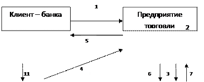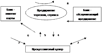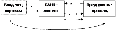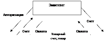 Использование банковской карты для оплаты покупки (получения наличных денег) становится возможным только после получения разрешения эмитента (авторизации карты). Покупка товара в торговой сети с использованием банковской карты осуществляется следующим образом (рис. 7).