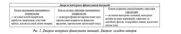 С. Ілляшенко вважає [10, с. 212], що особливо важливий венчурний капітал при комерціалізації результатів наукових досліджень у наукоємких і високотехнологічних галузях та для підприємств, які беруть активну участь у розробці і впровадженні у виробництво наукових ідей і технологій.