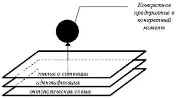 Какие знания о предприятии должен руководитель использовать при осуществлении диагностики и какие знания он должен получить в ее результате? Можно выделить три "слоя" знаний о предприятии, необходимых руководителю (рис.2.1). Во-первых, можно составить схему, отражающую деятельность любого предприятия. Такая схема (ее называют онтологической) покажет, в каких областях нужно проводить исследования, чтобы получить необходимую информацию. Во-вторых, руководителю необходимо знание того, чем данное предприятие отличается от других, в чем его особенности, насколько они соответствуют требованиям возможных рынков и их сегментов. Это знание об особенностях данного предприятия называется идентифицирующим. И в-третьих, нужно знать, в чем особенности сегодняшней ситуации на предприятии в отличие от того, что было вчера, еще раньше и от того, что могло бы быть сегодня, если бы не... И вот здесь возникает один из основных вопросов: а что, собственно, произошло, что ситуация на предприятии сегодня неблагополучна, если ранее предприятие работало нормально? И что вчера считалось нормальной ситуацией, может быть как раз вчерашнюю "нормальную" ситуацию сегодня следует считать неблагополучной?