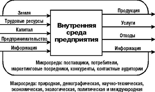 Любое предприятие находится и функционирует в среде. Каждое действие всех без исключения организаций возможно только в том случае, если среда допускает его осуществление. Внутренняя среда организации является источником ее жизненной силы. Она заключает в себе тот потенциал, который дает возможность организации функционировать, а, следовательно, существовать и выживать в определенном промежутке времени. Но внутренняя среда может также быть и источником проблем и даже гибели организации в том случае, если она не обеспечивает необходимого функционирования организации. Внешняя среда является источником, питающим организацию ресурсами, необходимыми для поддержания ее внутреннего потенциала на должном уровне.