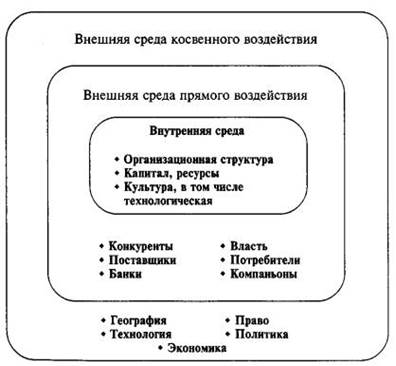Под внутренней средой понимается хозяйственный организм фирмы, включающий управленческий механизм, направленный на оптимизацию научно-технической и производственно-сбытовой деятельности фирмы. Когда речь идет о внутренней среде фирмы, имеется в виду глобальная структура фирмы, охватывающая все производственные предприятия фирмы, финансовые, страховые, транспортные и другие подразделения, входящие в фирму, независимо от их местоположения и сферы деятельности.