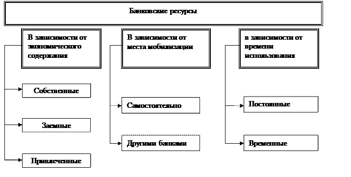 С точки зрения источников образования ресурсы коммерческих банков делятся на собственные и привлеченные.