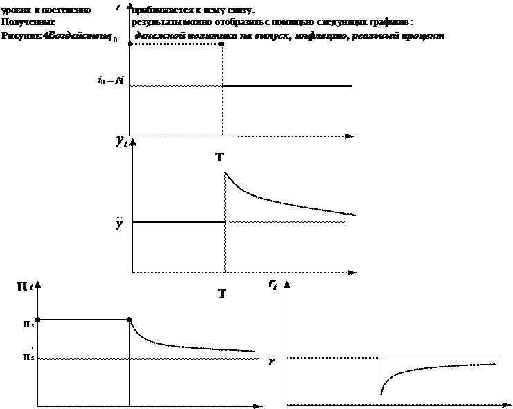 Эффект проводимой политики заключается в том, что выпуск в момент снижения номинального процента оказывается выше уровня долгосрочного равновесия y