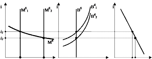 Известно, что центральный банк может проводить денежно-кредитную политику либо контролируя денежную массу (в узком смысле), либо управляя номинальным процентом. Как мы подробно обсудим чуть дальше, кейнсианцы считают управление денежной массой крайне неэффективным инструментом проведения денежной политики ввиду нестабильности спроса на деньги. Напротив, номинальный процент с их точки зрения, является наиболее приемлемым инструментом, т.к. процент непосредственно воздействует на спрос. Поскольку в данном разделе рассматривается кейнсианская концепция, то естественно считать, что инструментом денежной политики является именно номинальный процент. Это означает, что номинальный процент, фигурирующий в уравнении (13), находится под контролем центрального банка.