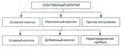 Основным источником финансирования является собственный капитал (рис. 2). В его состав входят уставный, накопленный капитал (резервный и добавочный капиталы, нераспределенная прибыль) и прочие поступления (целевое финансирование, благотворительные пожертвования и др.).