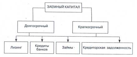 Заемный капитал — это кредиты банков и финансовых компаний, займы, кредиторская задолженность, лизинг, коммерческие бумаги и др. (рис. 4). Он подразделяется на долгосрочный (более года) и краткосрочный (до года).