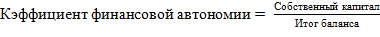 | 1.Коэффициент финансовой автономии | 0,31 | 0,32 | 0,01 |