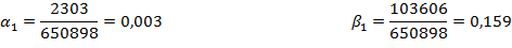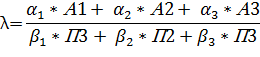 Весовые коэффициенты a , b рассчитываются по формуле: