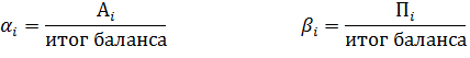a , b - весовые коэффициенты соответствующих групп актива и пассива.