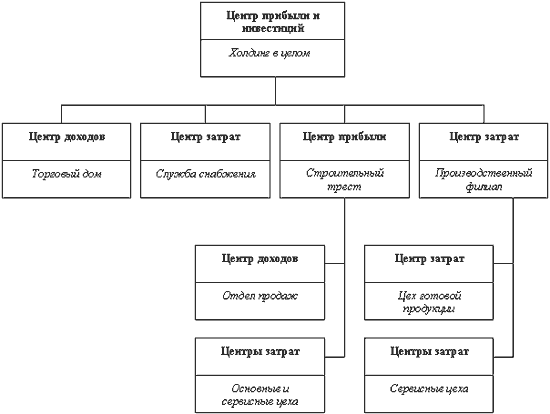 Таким образом, деятельность предприятия как объекта управления можно разложить на отдельные процессы: закупки, производство, сбыт, инвестиции. Соответственно, структурные подразделения, управляющие данными процессами, можно рассматривать как центры ответственности за их реализацию.