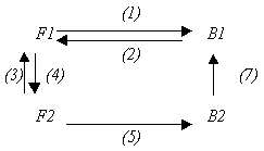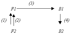 При этом банк покупателя производит списание средств со счета предприятия-покупателя F1 , а банк поставщика производит зачисление соответствующих сумм на счет предприятия-поставщика F2 .