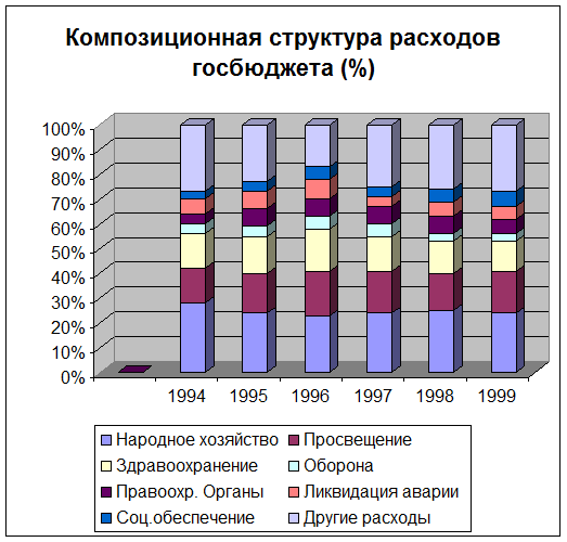 Быстрый рост расходов бюджета был вызван не только инфляционными процессами, но и переориентацией направления бюджетных ресурсов на новые приоритеты и потребности, необходимостью самостоятельного обеспечения внутренней и внешней безопасности.
