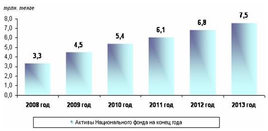 С учетом вышеизложенных подходов, дополнительные накопления в Национальном фонде к 2020 году составят более 40 млрд. долл. США, а активы должны возрасти до 90 млрд. долл. США, что составит не менее 30% к ВВП.