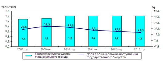 Доля привлекаемых средств Национального фонда в виде гарантированного и целевого трансфертов в общем объеме поступлений государственного бюджета
