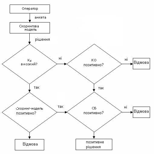Формалізований алгоритм роботи і впровадження скорингової системи в комерційному банку має такий вигляд: