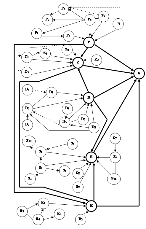 Для наочності покажемо зв'язок вхідних і вихідних факторів експертної системи на рисунку
