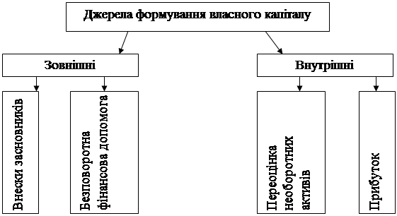Власний капітал формується за рахунок також зовнішніх та внутрішніх джерел (Рис. 1.4).