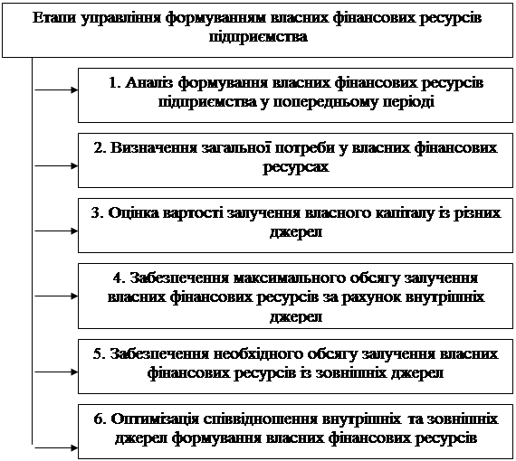 Рис. 1.5. Основні етапи управління формуванням власних фінансових ресурсів підприємства