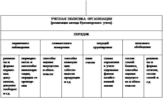 Формирование и реализация учетной политики связаны с практическим осуществлением бухгалтерского учета. Поэтому, говоря об учетной политике, следует отталкиваться от традиционных взглядов на метод учета, который представляет собой совокупность приемов первичного наблюдения, стоимостного измерения, текущей группировки, итогового обобщения фактов хозяйственной деятельности. Из всей совокупности способов необходимо выбирать те, которые будут оптимальны для конкретной хозяйственной ситуации, реализуемой в рамках конкретного хозяйствующего субъекта, функционирующего в условиях конкретной среды — правовой, экономической и т.д. Возможность выбора конкретных способов оценки, калькуляции, состава и порядка ведения счетов и др., особенности использования этих приемов — все это в целом составляет степень свободы организации в формировании учетной политики.